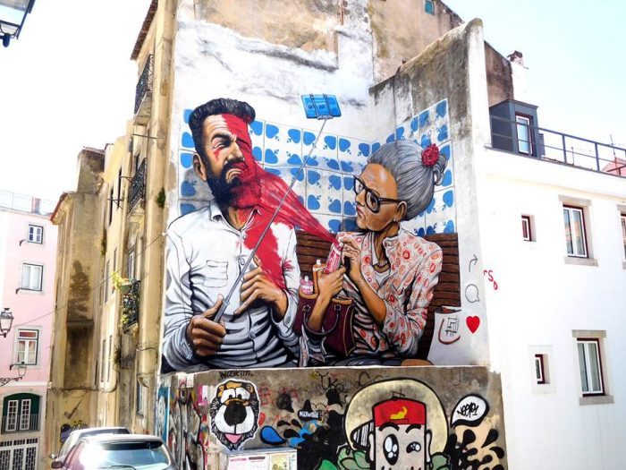 Associazioni, movimenti, piattaforme cittadine a Lisbona e in altre città europee, unite per contrastare la gentrificazione e la turistificazione. E poi l’arte. In particolare due lavori artistici molti conosciuti nella capitale portoghese: il primo è un documentario, Terramotourism, realizzato dal collettivo Left Hand Rotation già qualche anno fa, è un ritratto della trasformazione della città mettendo a confronto gli effetti del famosissimo e devastante terremoto che si verificò a Lisbona nel 1755 e della “turistificazione”, come nuovo sisma sociale ed economico. Il secondo è un murales dello street artist Andrea Tarli, artista ascolano che in passato ha realizzato diversi lavori anche per la GAU (Galeria de Arte Urbana de Lisboa) e che con una sua opera partecipò nel 2016 a Paratissima Lisboa, un progetto espositivo pubblico e di spazio urbano di arte contemporanea. È una donna anziana che spruzza una bomboletta spray in faccia a un turista, una metafora della lotta dei residenti storici contro i turisti; il murales si trova in Largo do Achada, nel quartiere Mouraria e suscitò (e lo fa ancora oggi a distanza di tempo) molto clamore nell’opinione pubblica. «Todos têm direito, para si e para a sua família, a uma habitação de dimensão adequada, em condições de higiene e conforto e que preserve a intimidade pessoal e a privacidade familiar». Questo dice l’articolo 65 della Costituzione portoghese post dittatura: Tutti hanno diritto, per sé e per la propria famiglia, a un’abitazione adeguata e confortevole e che preserva l’intimità e la riservatezza personale e famigliare. È vero, questo non significa che tutti hanno diritto ad avere una casa a Lisbona, ma chi vive da 20, 30 o addirittura 40 anni nello stesso quartiere ed è costretto ad andare via? Lisbona non scintilla più, o almeno non per tutti.